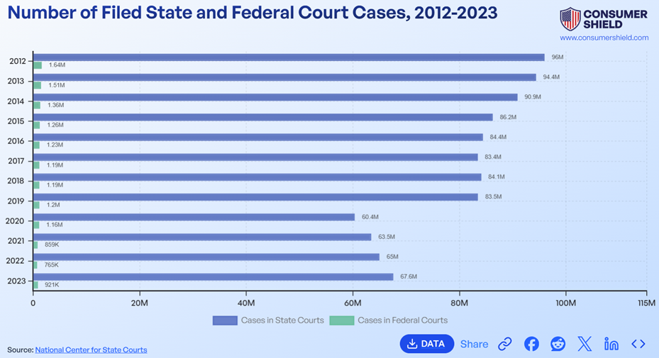 These cases are not overloading the courts by any means. The civil courts’ caseload, though certainly unnecessarily high, has eased in recent years, with the third-party litigation funding option in place, so that is not a valid reason for the proposed legislation. The number of lawsuits per year in the United States on the state and federal levels has declined by about one-third since 2012: