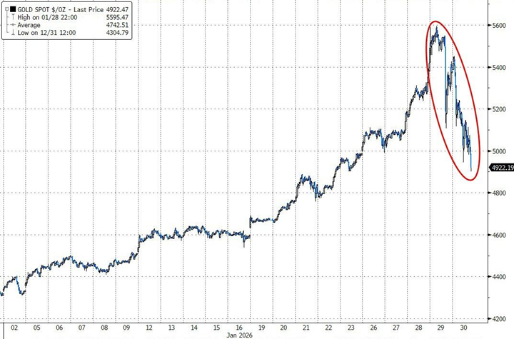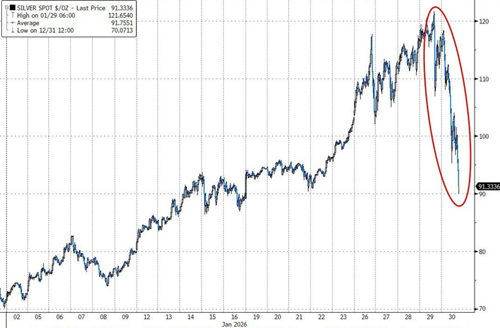Translation: once they realized that Warsh would probably be the next Fed chair, people traded gold and silver for dollars, after having done the opposite for months on end.
