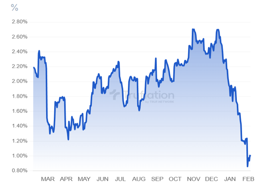 Truflation reported an annual inflation rate of 0.99 percent on Friday: