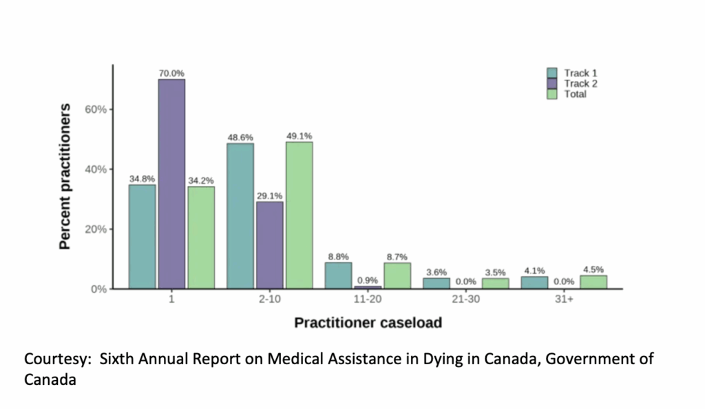 The second track is (their emphasis) “not ‘reasonably foreseeable’” deaths. These are better called recreational killings. “These made up a small minority of MAID provisions (4.4 percent).” Smart money says that percentage swells as the Boomers age out.